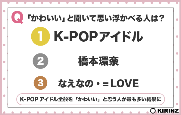 2. 「かわいい」と思う人には、K-POPアイドル・橋本環奈がランクイン