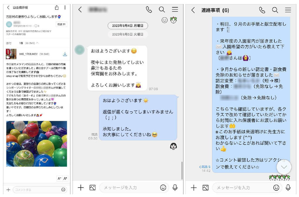 右:グループトークへ情報共有し、保育士どうしの明確な意思疎通が可能に