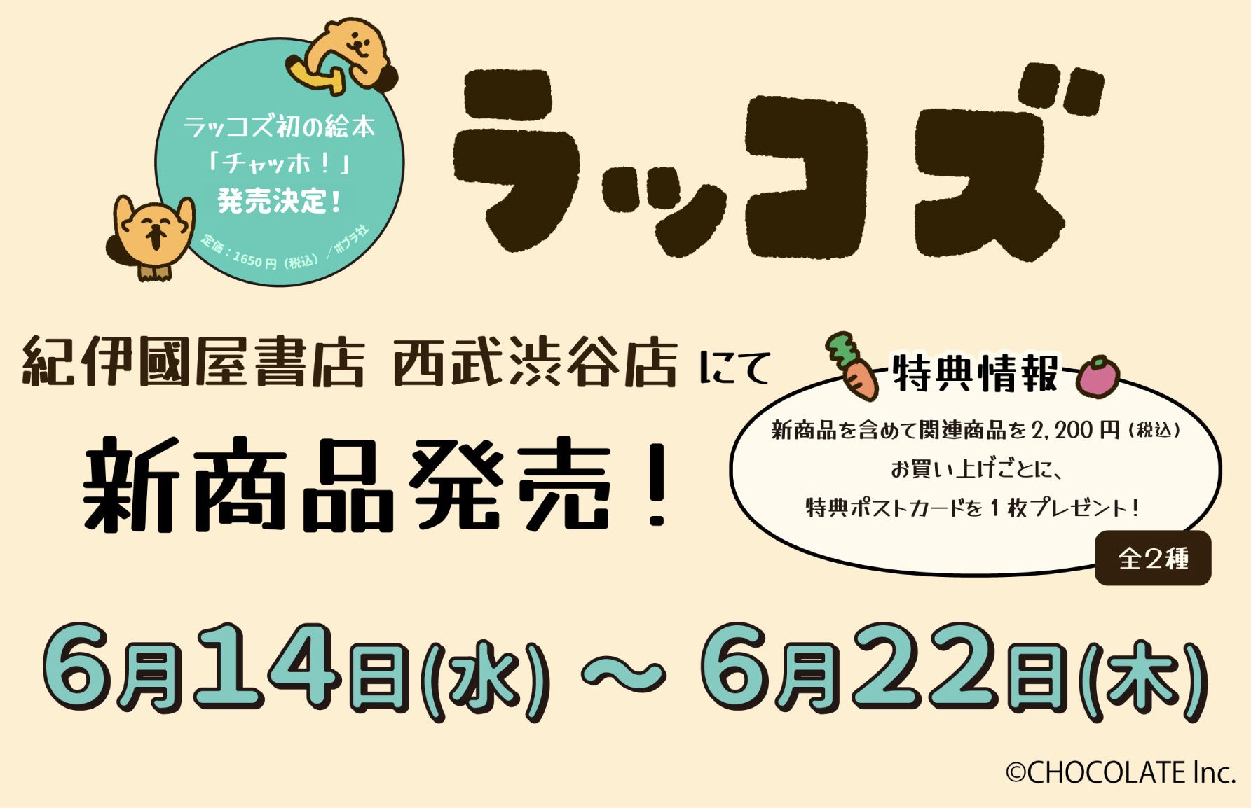 絵本『チャッホ!』と「ラッコズ」のグッズを販売する期間限定フェアを開催いたします。