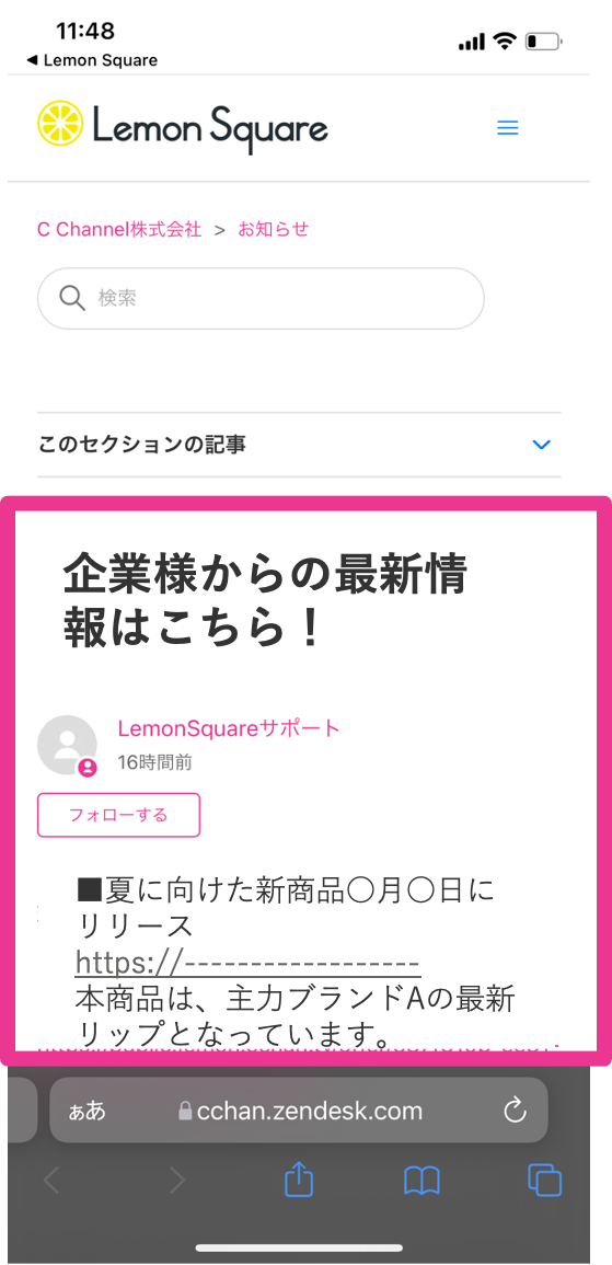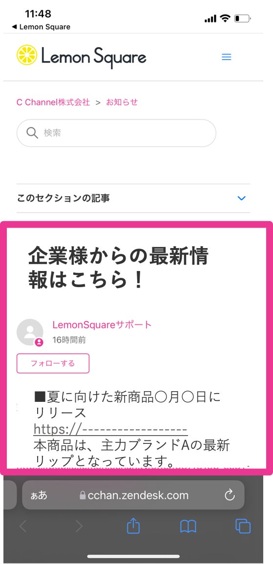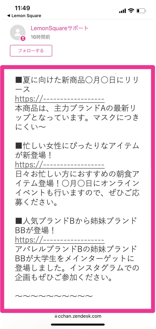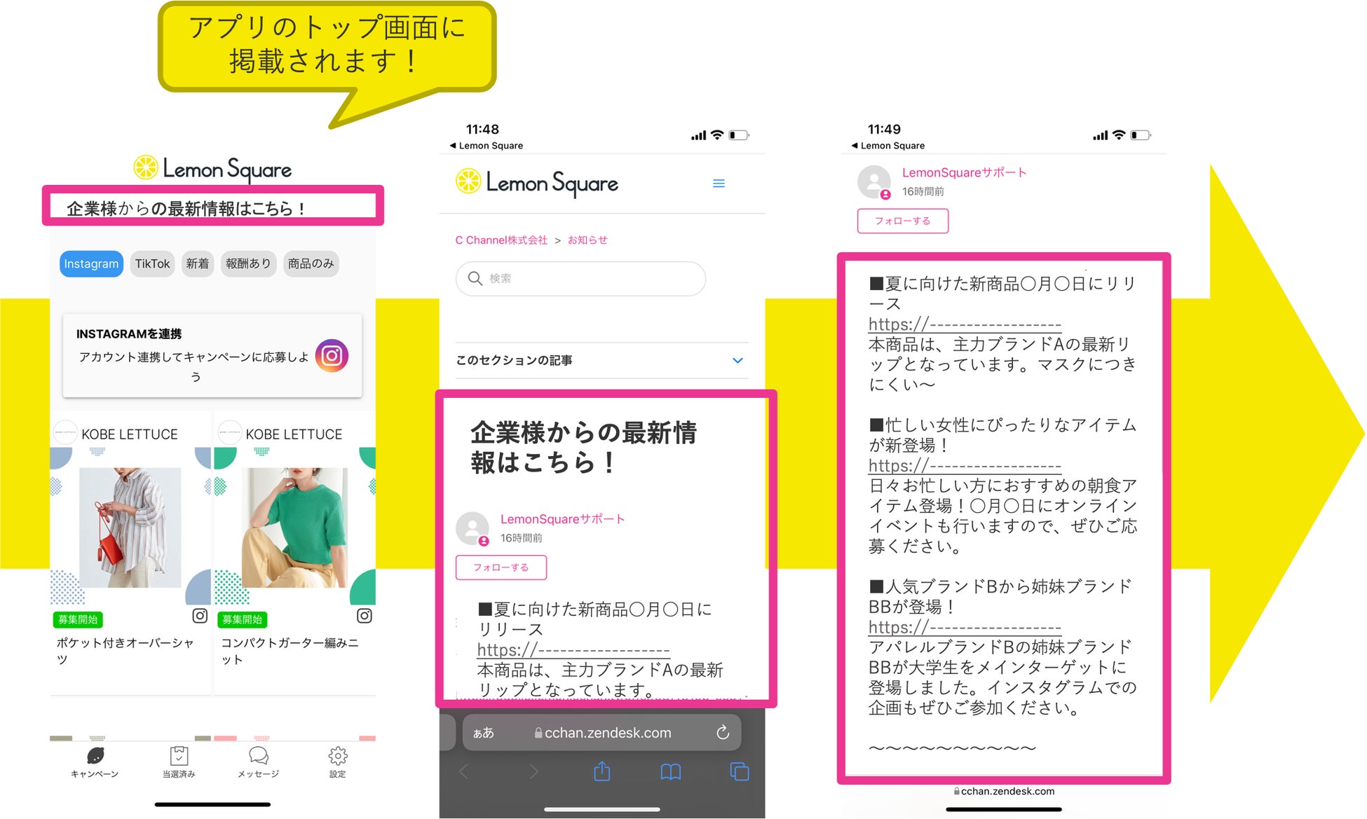 企業様側で配信されたプレスリリース情報を、Lemon Squareアプリ内でトレンド感度の高い11,000人以上のLemon Squareインフルエンサーへ向けて、無料で発信いただくことが可能になりました。