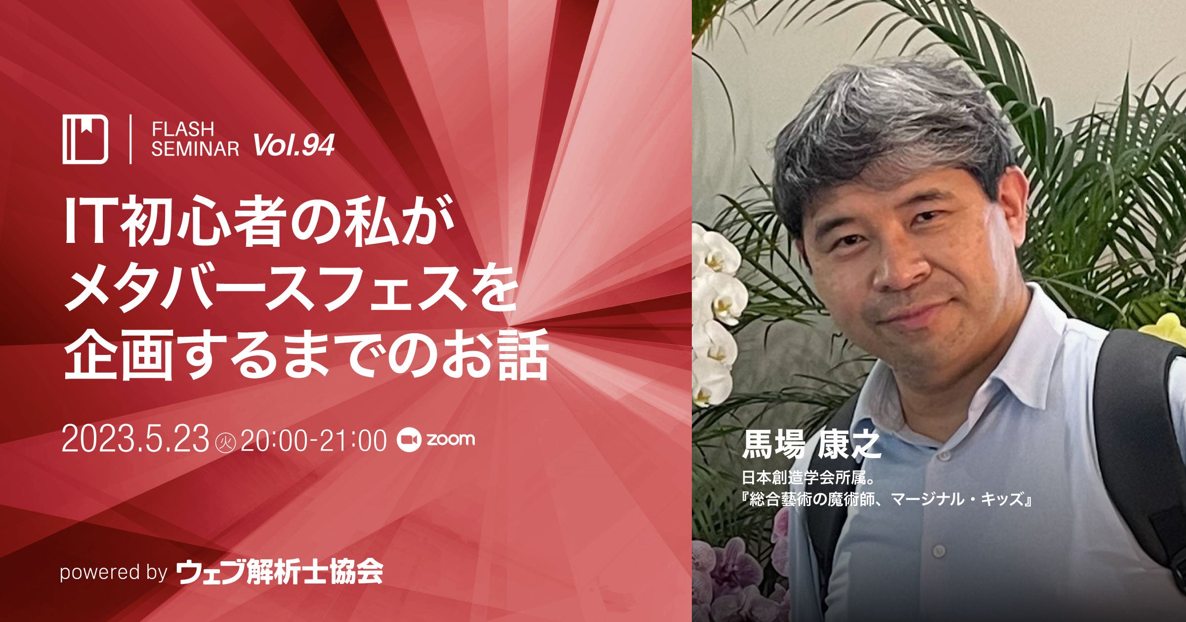 2023/5/23(火)20:00 - 21:00 【Flashセミナー】Vol.94 IT初心者の私がメタバースフェスを企画するまでのお話