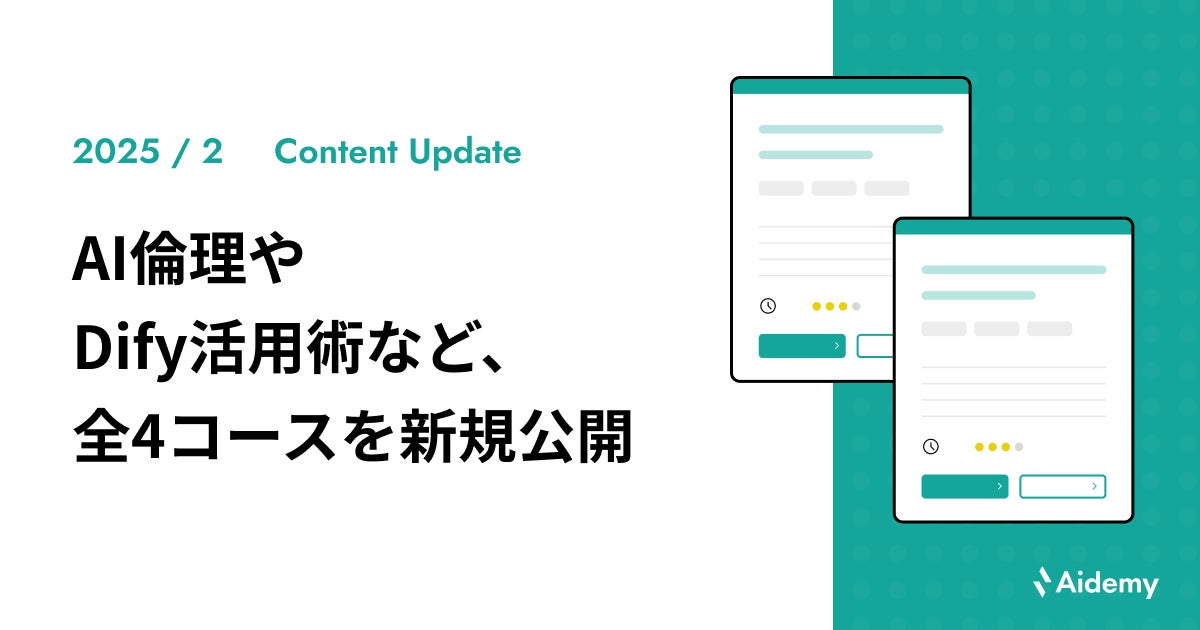 2025年2月は、AI時代のビジネスパーソンに欠かせない「AI倫理」やプログラミング不要でAIアプリケーションを開発できる「Dify」の活用法を学ぶコースなど、全4コースを新規公開いたしました。