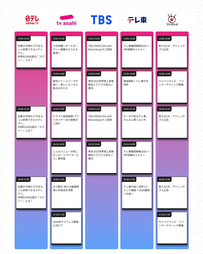 1/27(火)開催「第3回テレビカンファレンス」各民放キー5局ブースでのセッションタイムテーブル発表!さらに「カジュアル商談」申し込み受付スタート!