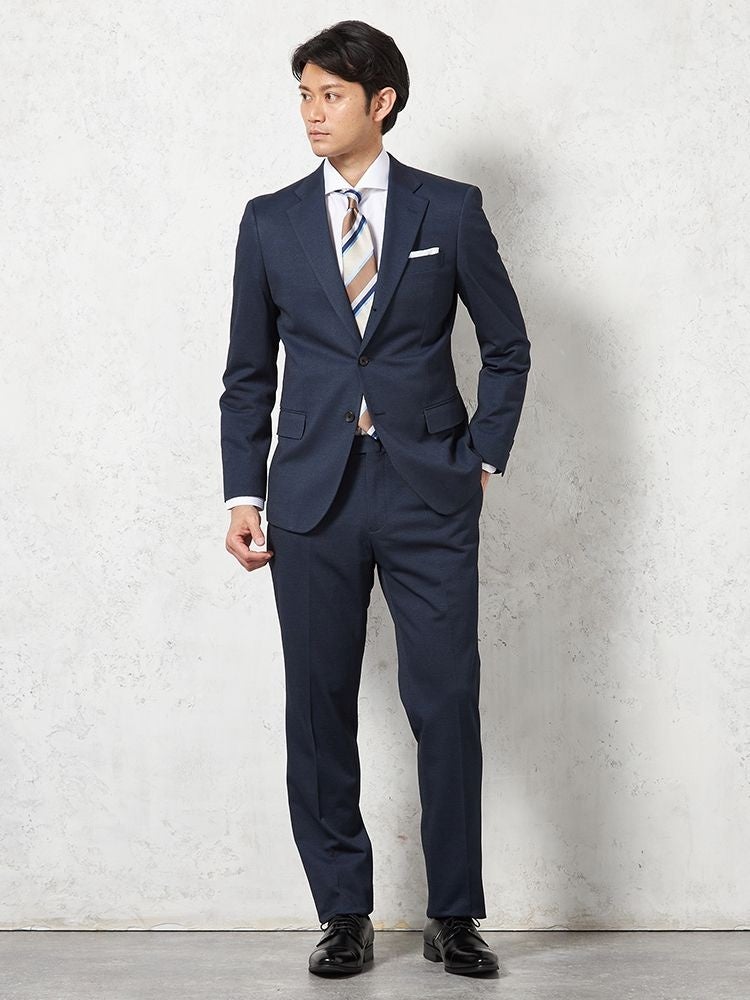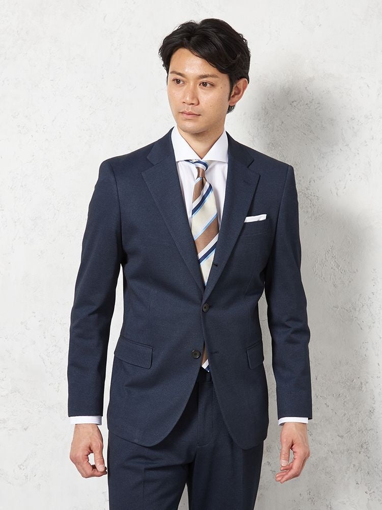 ■リネン混素材の爽やかな風合いと軽い着心地が春夏の着用にぴったりなニットスーツ