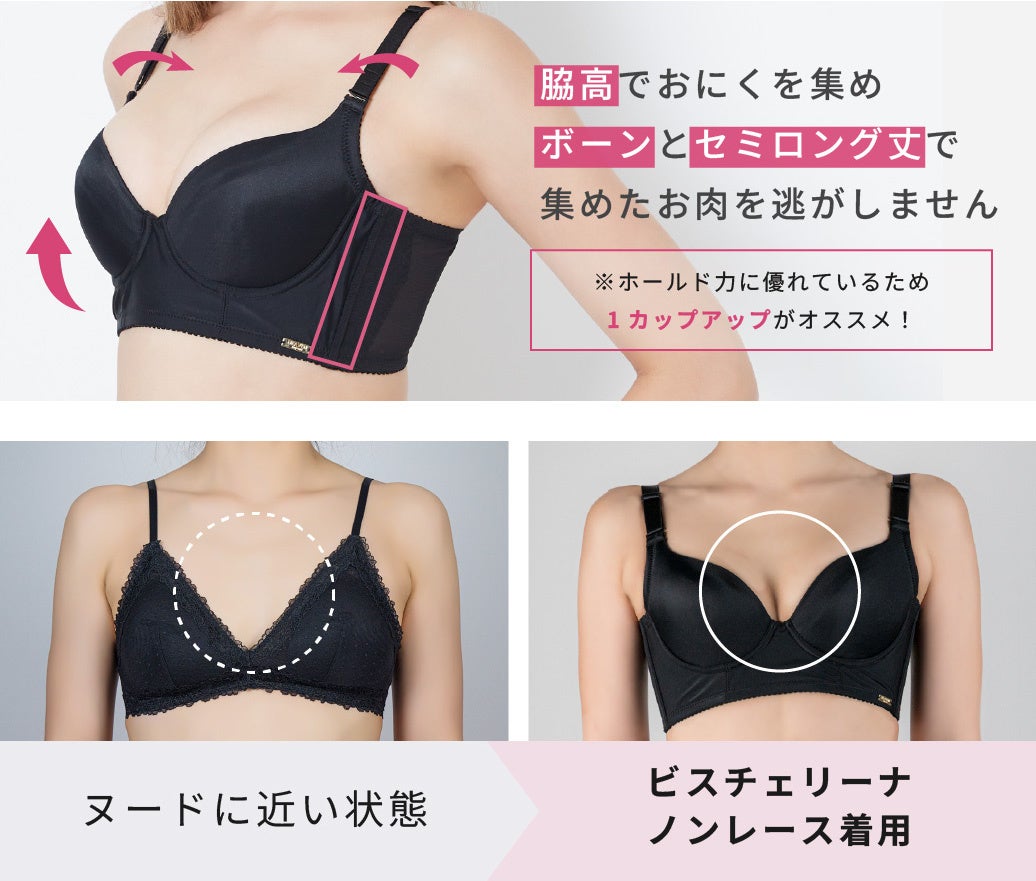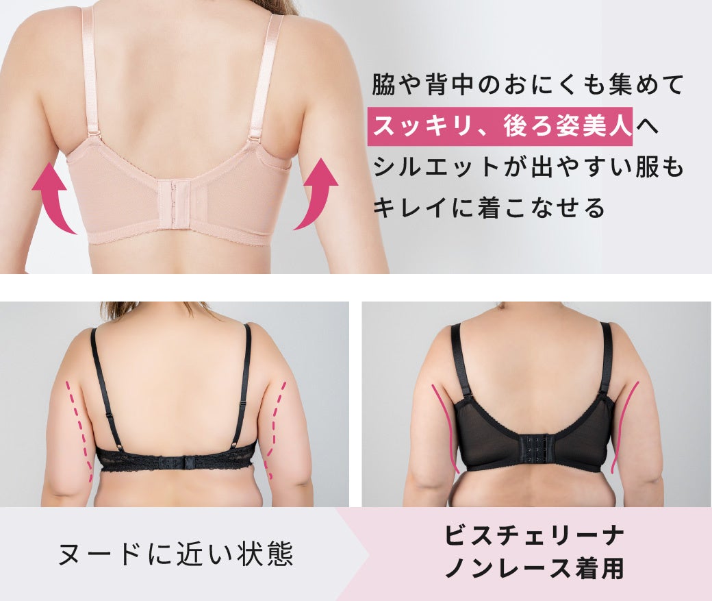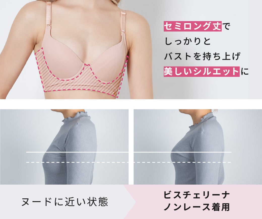 【新商品】機能も妥協しない、着け心地バツグンの響かないブラ。“じぶん史上最高”のメリハリボディと美シルエットを叶える!累計4万枚を突破した「ビスチェリーナ」からノンレースタイプが登場。