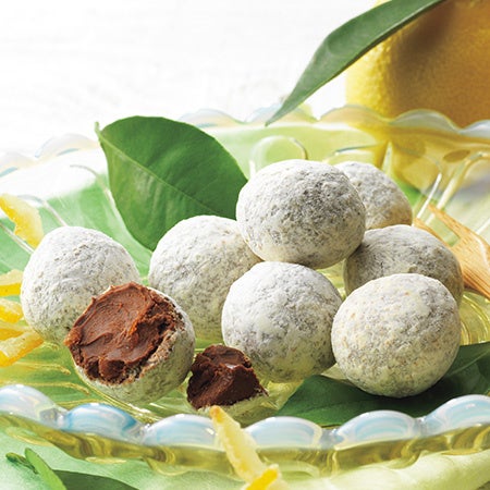 高級チョコレートの代名詞であるトリフを、気軽に楽しめるひと箱。ゆず酒と愛媛県産のゆずピールを加えたガナッシュに、シュガーパウダーとゆずパウダーをまぶしました。ゆずならではのさわやかな香りやほのかな苦みを、すっきりとした味わいのチョコレートが引き立てます。
