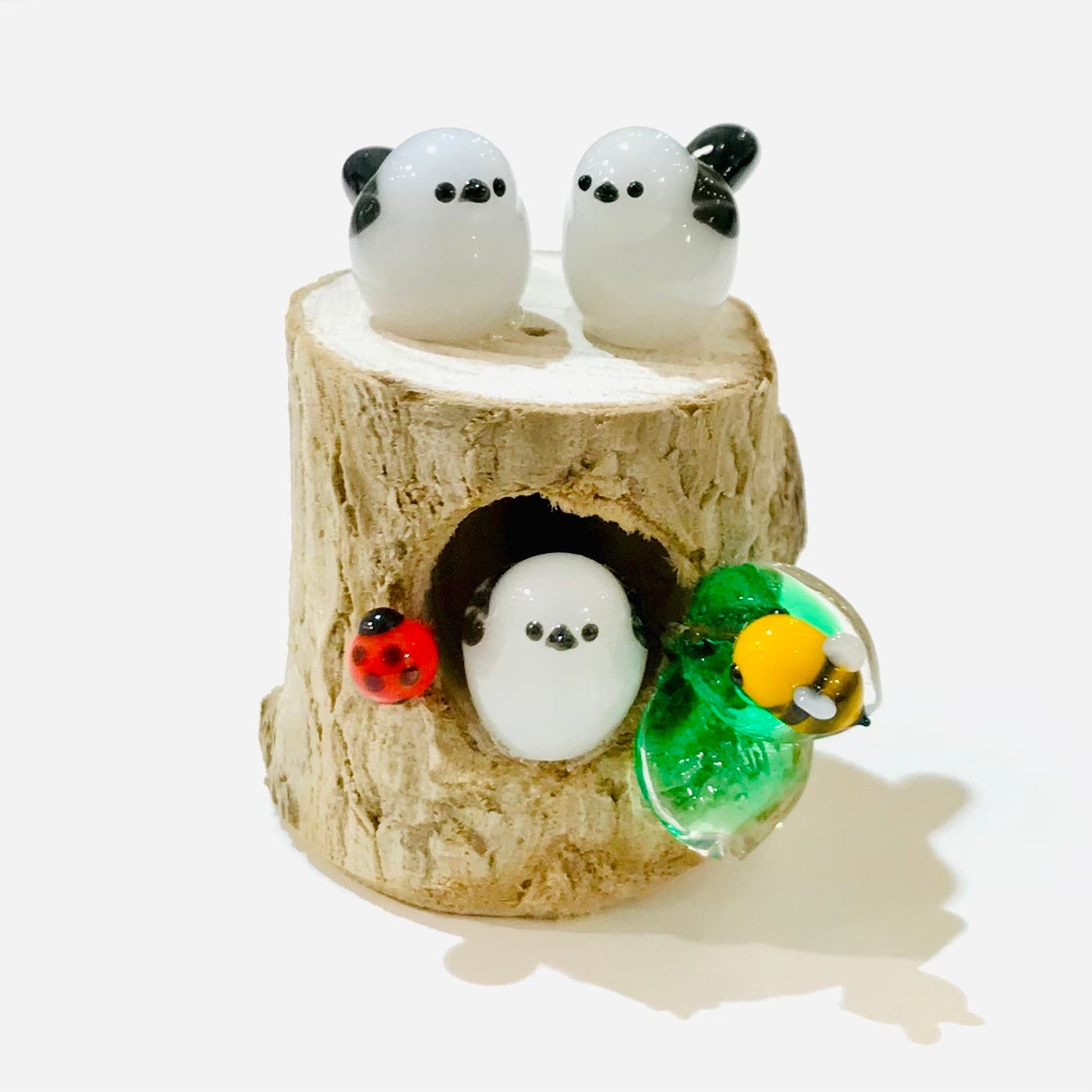 とても小さなガラス細工です。1羽1羽顔形が違いますので、お客様が好きな小鳥を選んでカスタムオーダーができます。