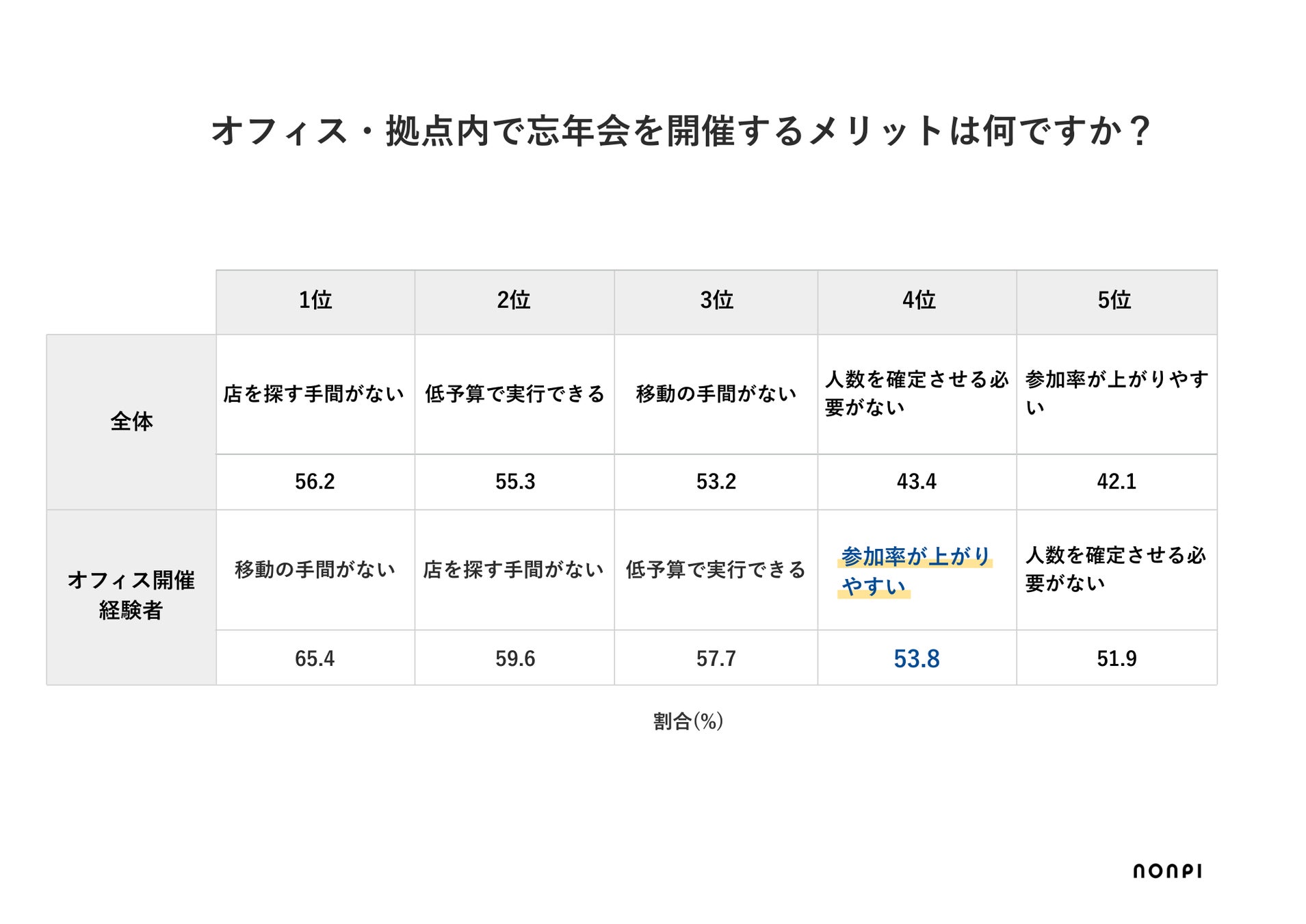・オフィス忘年会のメリットは“準備が楽で、参加率が上がりやすい”