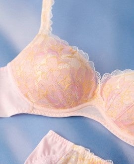独自のソフトストレッチカップ&ストラップがしなやかに伸縮し、ここちよくバストにフィット。今シーズンも、ノンワイヤーとワイヤー入り、2タイプのフィットが登場です。モチーフは、タチアオイの花。春らしいフェミニンなカラーで表現し、透明感のあるレースにその美しさを映しました。
