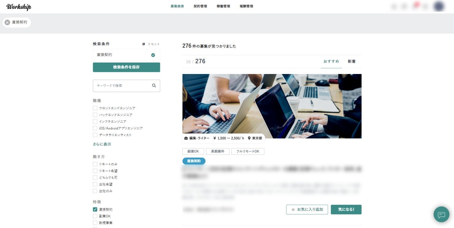 また「Workshipを通さず、クライアントと直接契約したい」というニーズにも対応。みなさまの要望に合わせて、Workshipは進化し続けています。