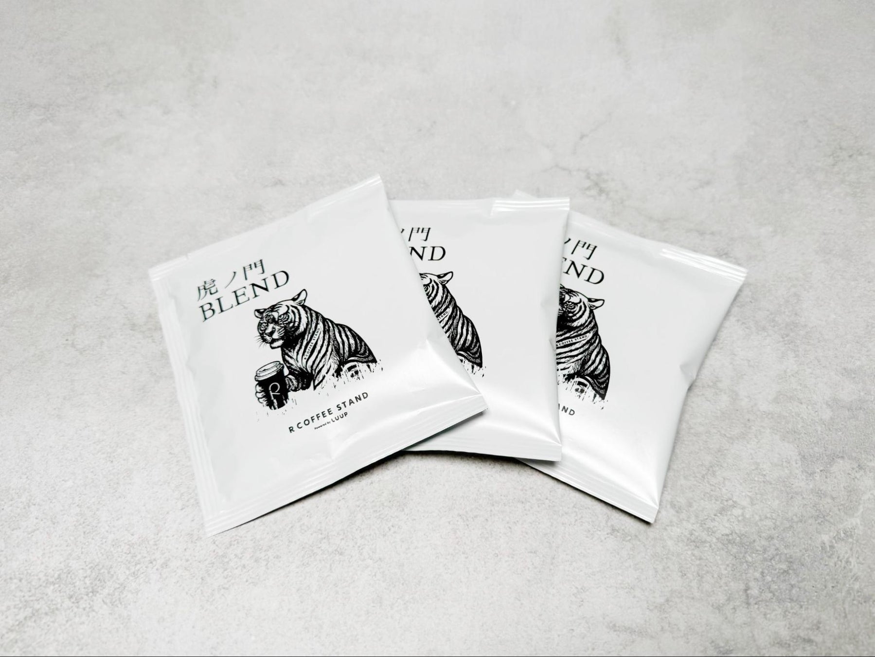 「R COFFEE STAND Powered by LUUP」でしか味わうことのできない限定ブレンド「虎ノ門BLEND」のドリップバッグの3個入。ブレンドの特徴としては、 ひとことで表すと、bittersweetな一杯。烏龍茶の軽やかさや、カカオのような豊かな味わいを感じ、蜜のような甘さが長く続きます。毎日飲んでも飽きのこないブレンドに仕上げました。