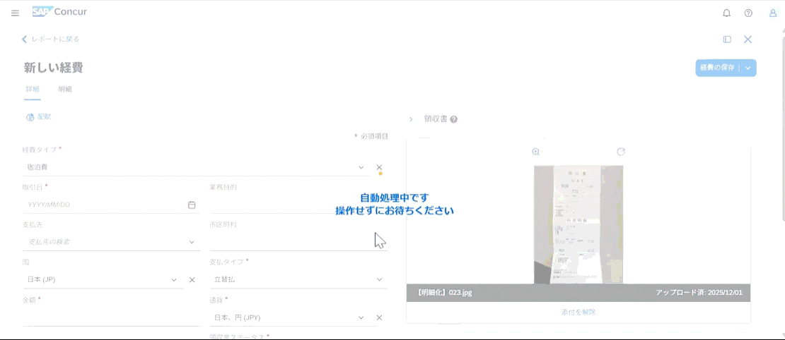 AI-OCRによる自動入力:領収書アップロード時、AI-OCR(光学文字認識)が自動で日付や金額などを読み取り、入力作業を支援します 。