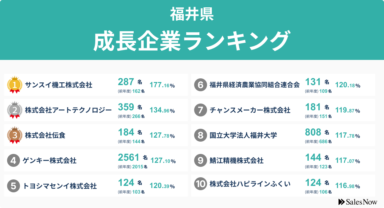 【福井県】成長企業ランキングTOP50!/SalesNow DBレポート