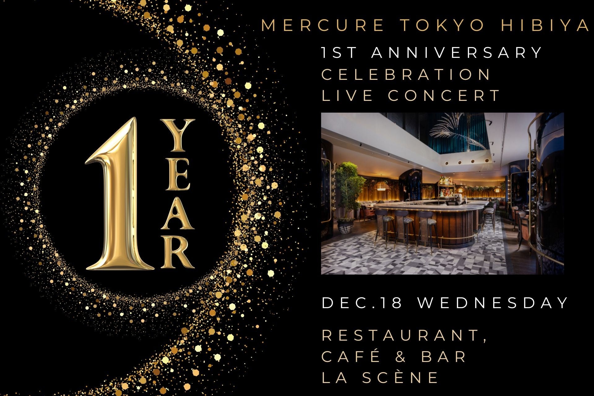 「劇場の舞台美術(ステージ・アート)」をデザインコンセプトとするメルキュール東京日比谷(所在地:東京都千代田区、総支配人:鈴木 通晃)は、開業一周年を記念して、レストラン・カフェ&バー「ラ・セヌ」で12月18日(水)にライブイベントを開催することをお知らせします。