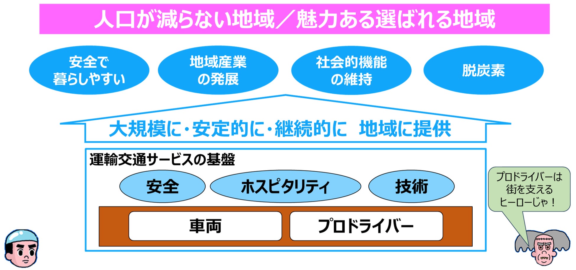 プロドライバー職がヒーローであり続け、年齢・性別問わず選ばれる職業にするため、「稼げる/働きやすい/誇れるの質向上」に本気(マジ)で取り組んでまいります。