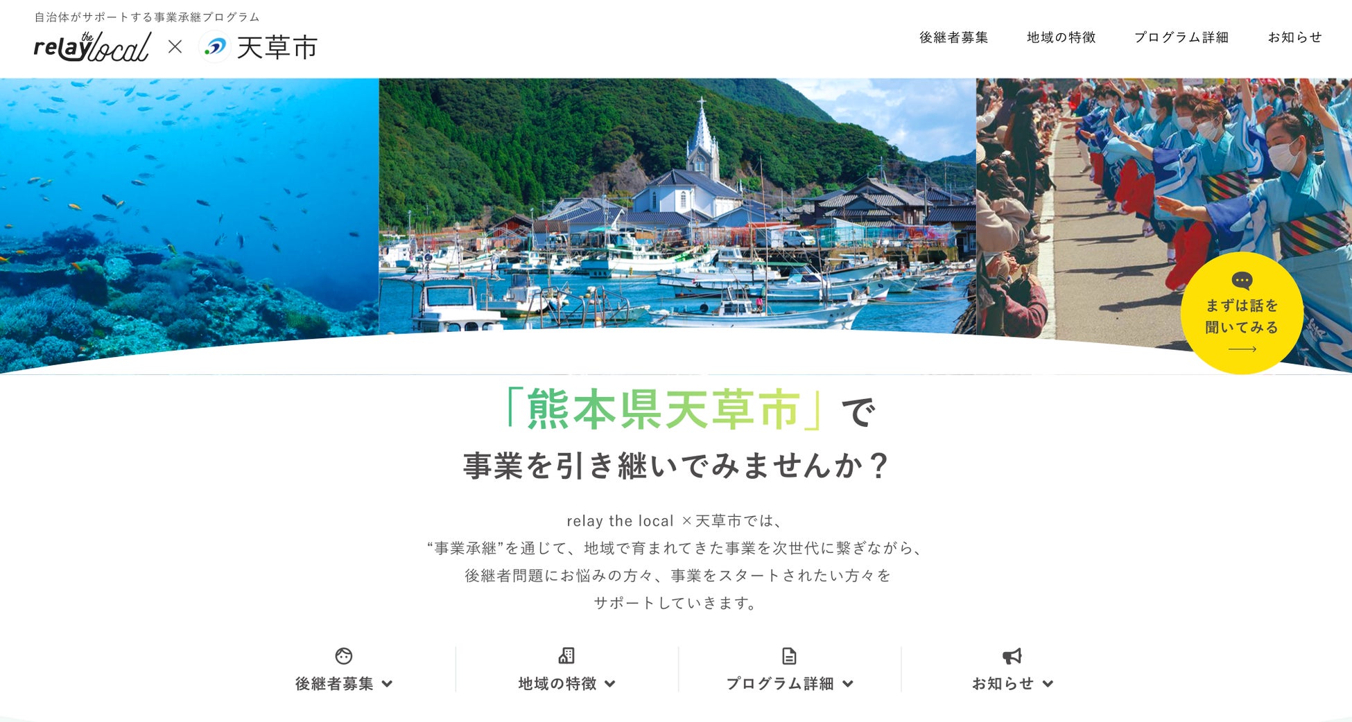 【自治体向け事業承継支援サービス】事業承継マッチングプラットフォーム「relay」、熊本県天草市に特化した後継者募集の特設ページ「relay the local 天草市」を開設