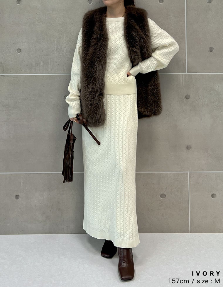 商品名:[低身長サイズ有]ケーブルニットスカート