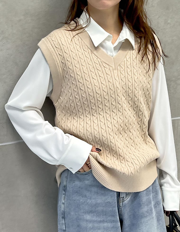 クラシックなケーブル編みが、上品さをプラスするニットベスト。