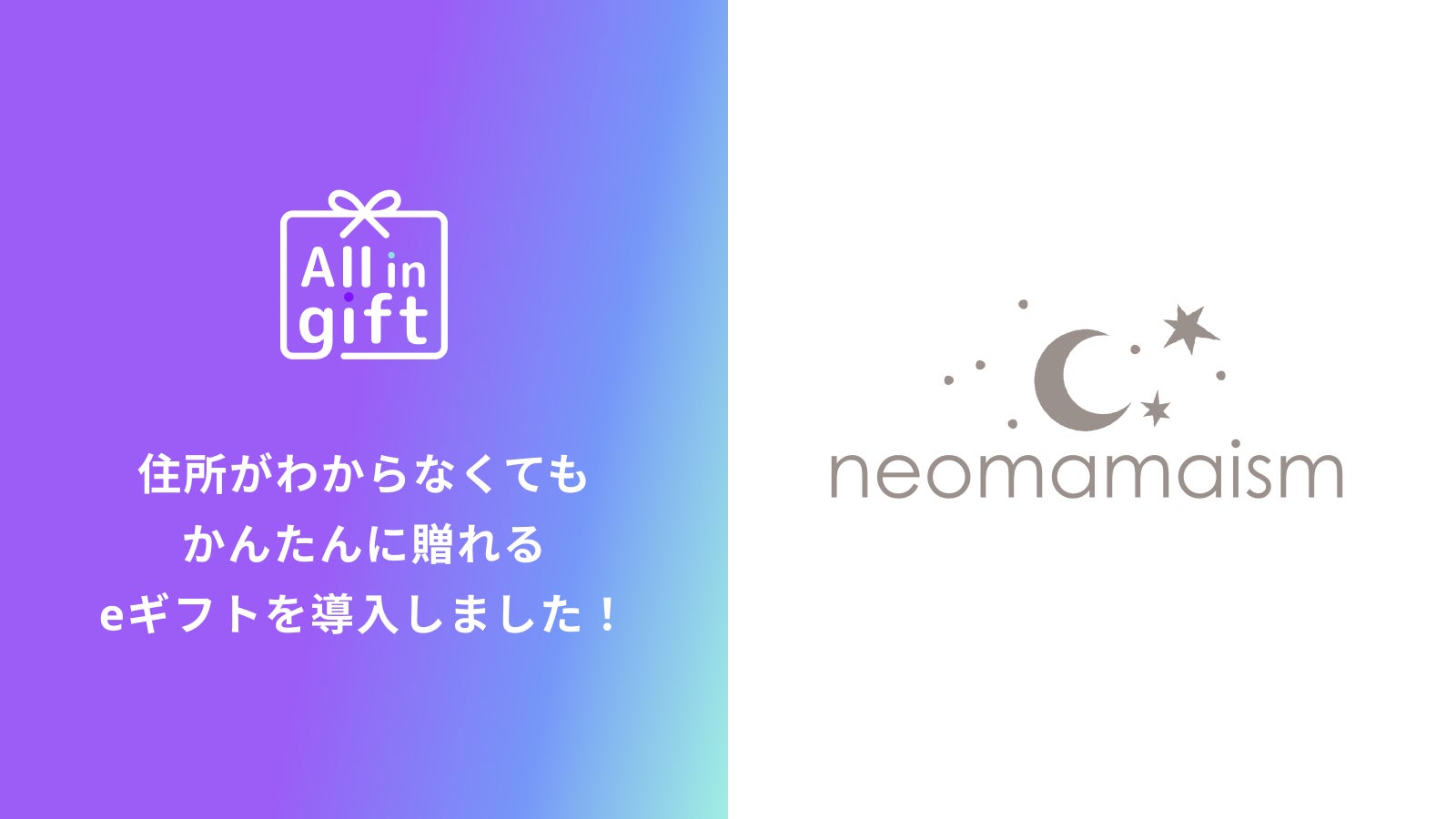 eギフトアプリの「All in gift」、「neomamaism(ネオママイズム)」にて採用