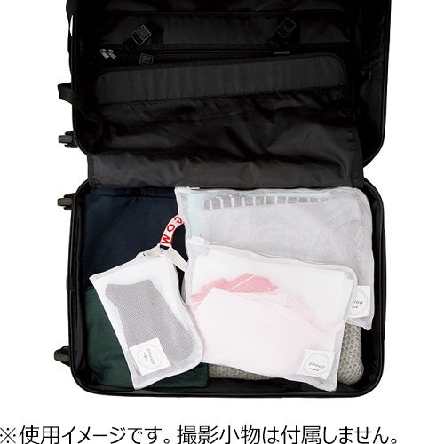 旅行後にはそのまま洗濯機に入れれば洗濯ネットに早変わりするパッキングに大活躍な収納ポーチです。