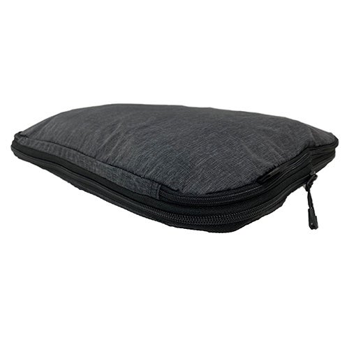 ファスナーを閉めるだけで簡単に容量を圧縮できる収納ケースです。余分なかさばりをなくしてスッキリさせることができるため、荷造りの際スペースの確保に役立ちます。専用ファスナーには指をかけやすい引手が付いており、収納口は閉めるときに生地を挟み込まないように折り目加工をしています。生地は汚れに強いテフロン加工を施しています。