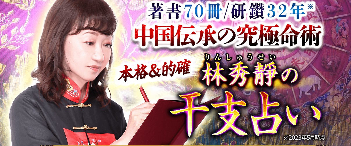 干支占い|著書70冊【中国伝承の究極命術】本格で的確◆林秀靜の占いサイトが、うらなえる本格鑑定で提供開始!