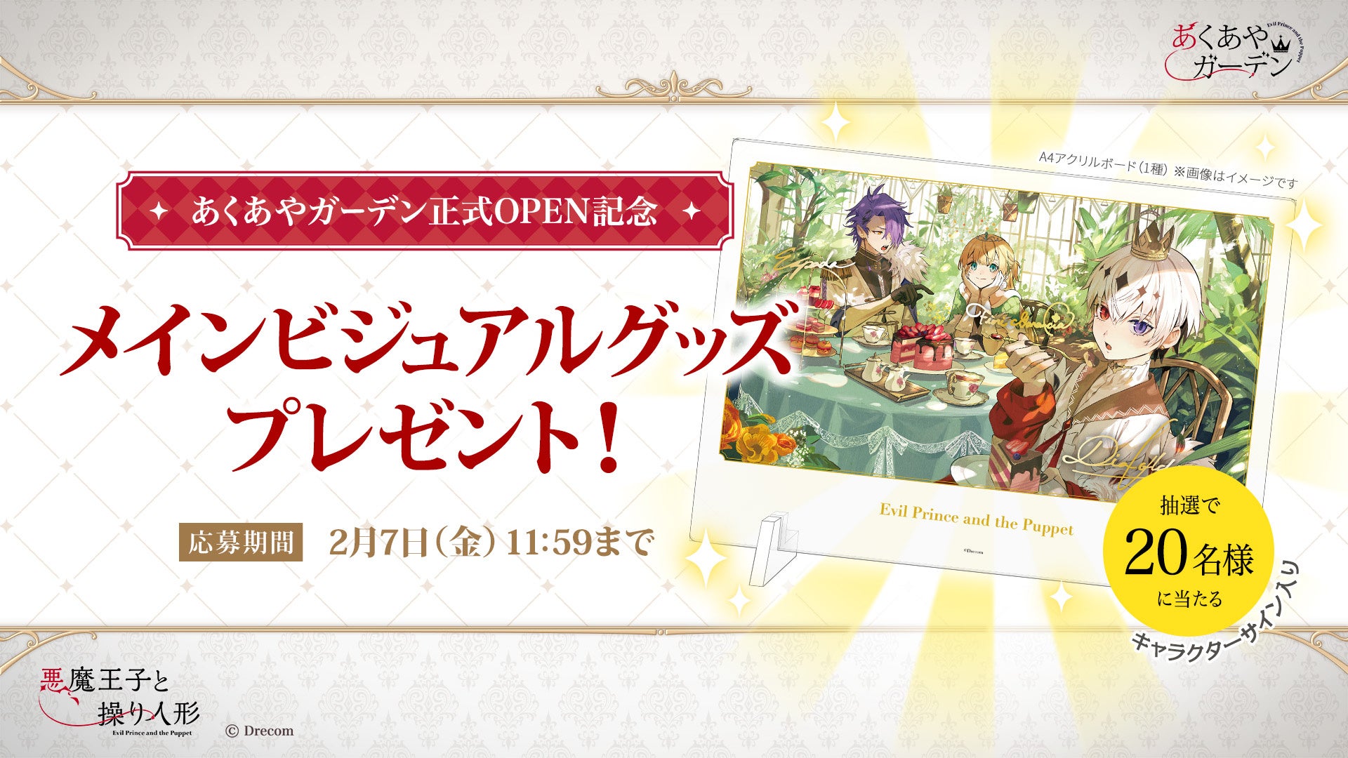 弔花者と呪いを癒すダークファンタジー『悪魔王子と操り人形(あくあや)』の公式Webファンコミュニティ「あくあやガーデン」が本日1月31日(金)に正式オープンいたしました。