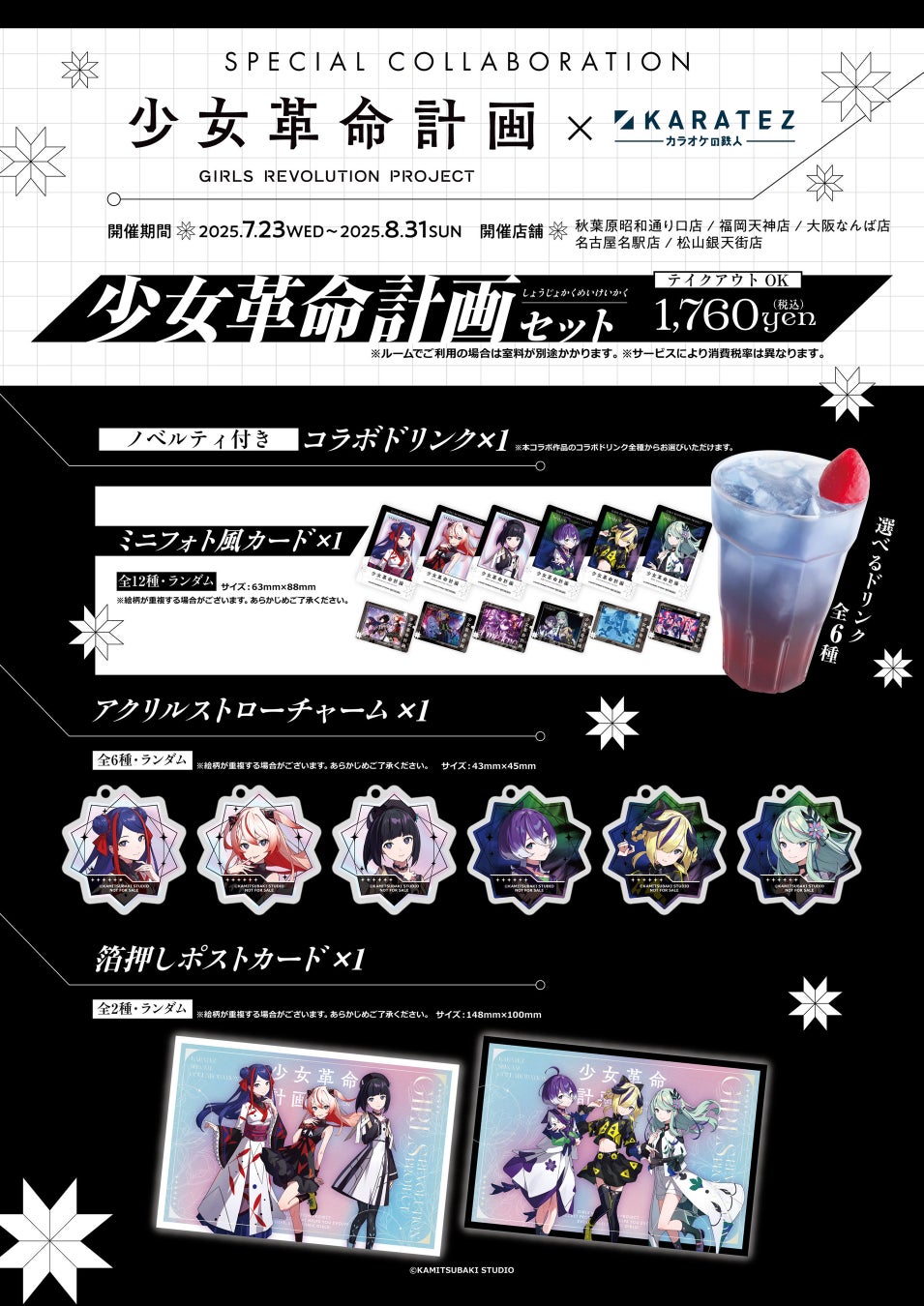 コラボドリンクとセットメニュー限定のノベルティが付いた「少女革命計画セット」を販売します。
