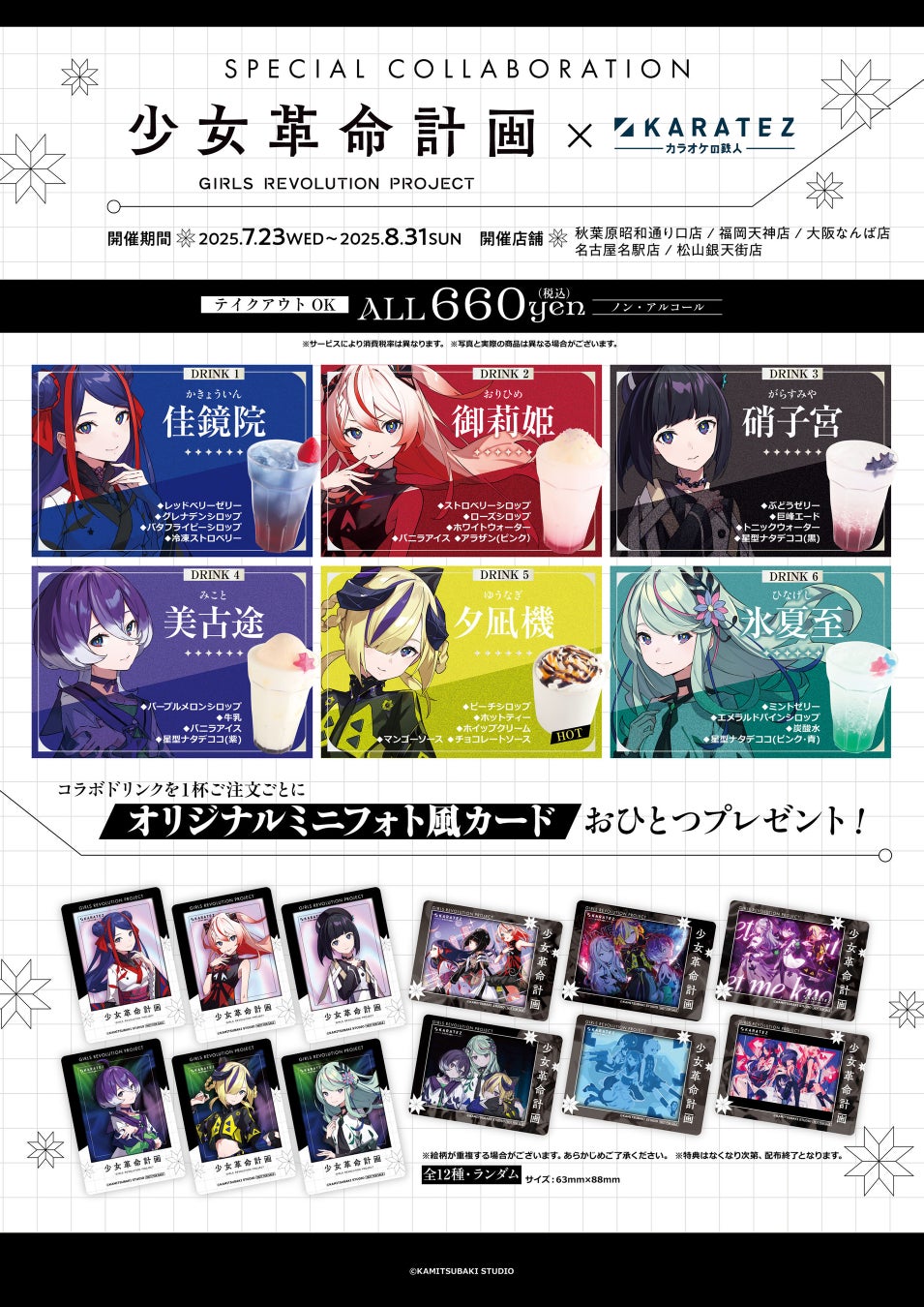 「少女革命計画」のアーティストをイメージしたコラボドリンクメニューが登場します。