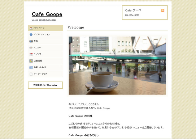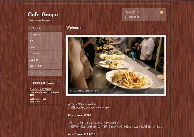 「グーペ」は、メニュー一覧やアクセスマップなど、飲食店ホームページに特化したコンテンツがあらかじめ用意されているため、お店の情報を登録すれば、すぐにお店専用のホームページが完成します。また、店内や料理の写真でお店の雰囲気を伝えることができるフォトアルバムや、お店のイベントや日替わりメニューをお知らせするカレンダーなど、お店のファンやリピーター向けのページも作成できます。自由度の高いデザインカスタマイズ機能も備えているため、お店の雰囲気やコンセプトに合わせてコンテンツやデザインを自由にカスタマイズすることで、お店が伝えたい情報を発信できるホームページが完成します。