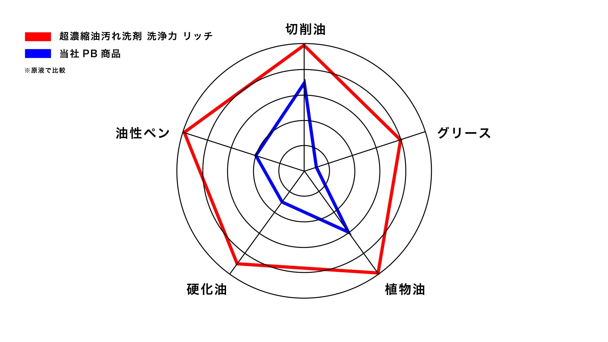 有効成分を50%以上配合することで頑固な油汚れをしっかりと除去、性能評価を繰り返して開発したプライベートブランド商品