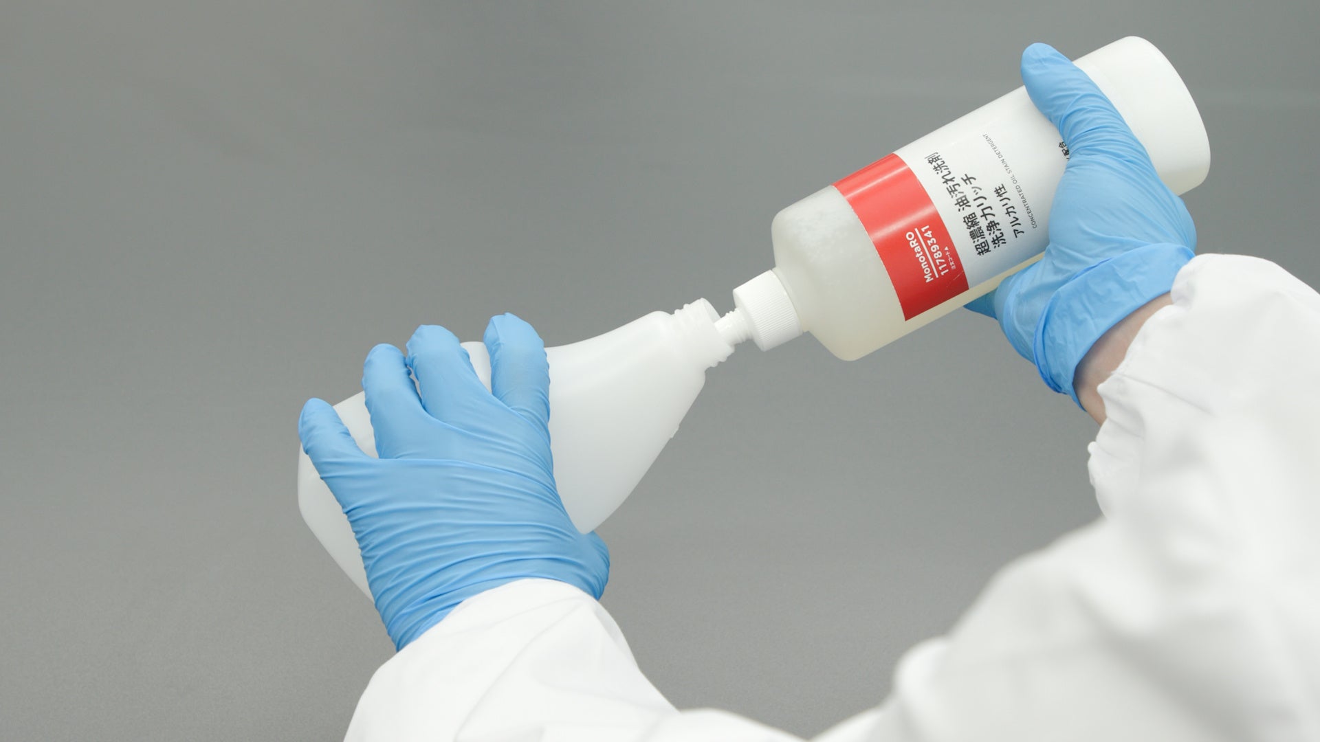 希釈時の移し替えやすさを考慮し、トンガリノズルを採用しました。先端がとがっているので他の容器へ移しやすく、直接塗布もしやすいので作業効率向上へ繋がります。