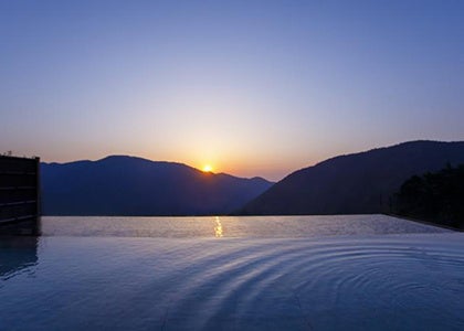 朝食の和洋ビュッフェでは、相模と駿河の海と富士山麓から箱根にかけて、海山の地場食材をふんだんに使ったシェフが丹精込めて創り上げる健康的で味わい深い料理をお楽しみいただけます。また、大浴場での入浴は“インフィニティ温泉”と称される「浮雲の湯」、目の前に滝が流れる「車沢の湯」のいずれかを、その日の男女別に合わせてご利用いただけます。