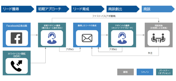 本サービスでは、専門のマーケティング人材がお客様の事業目標や現状のマーケティング活動状況を理解した上で、最適な運用を提案し、業務プロセスを設計した上でその代行を行います。