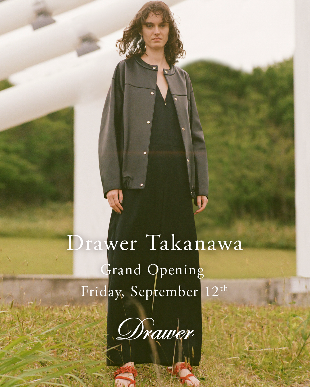 ショップ名の「DRAWER」は、引き出しの上段に上質なモノを入れたという英国の風習に由来します。際立って上質で洗練された逸品と、それを引き立たせるコーディネートや店舗空間を通して、特別な高揚感を感じていただけるお店です。メインとなるオリジナル企画商品とともに国内外から厳選したデザイナーズブランドを展開し、永く愛着が持てるベーシックなアイテムにモードなアイテムを加えることで、大人の女性ならではの凛としたスタイルを提案しています。