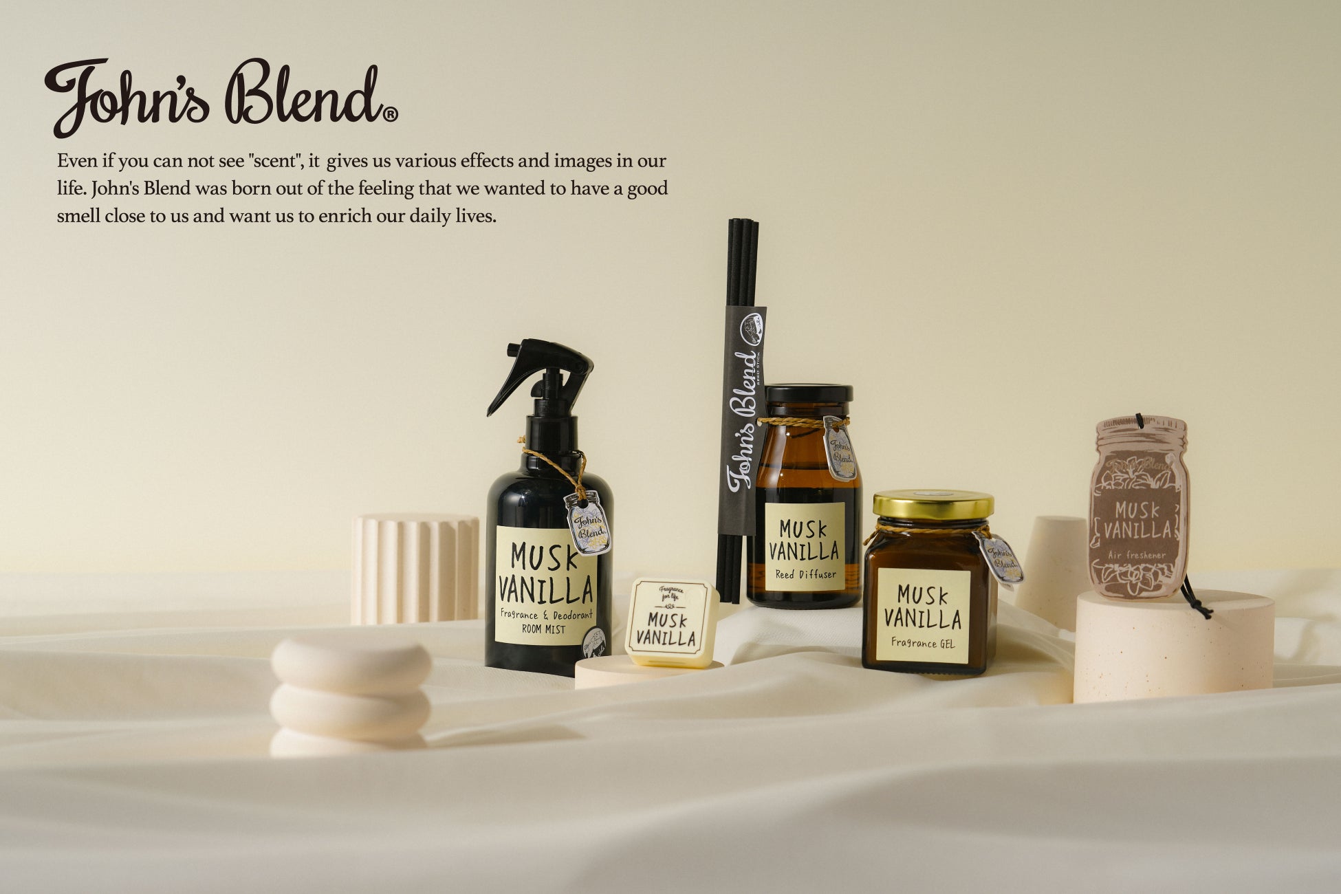 John's Blendのシンプルで視認性の高いパッケージデザインを踏襲。ラベルをクリーム色にすることでバニラの優しい雰囲気を演出しています。インテリアに溶け込みやすく、世代や性別を問わず多くの方にお使いいただけます。ギフト需要にも応えられるラインナップは、プレゼントとしても最適です。