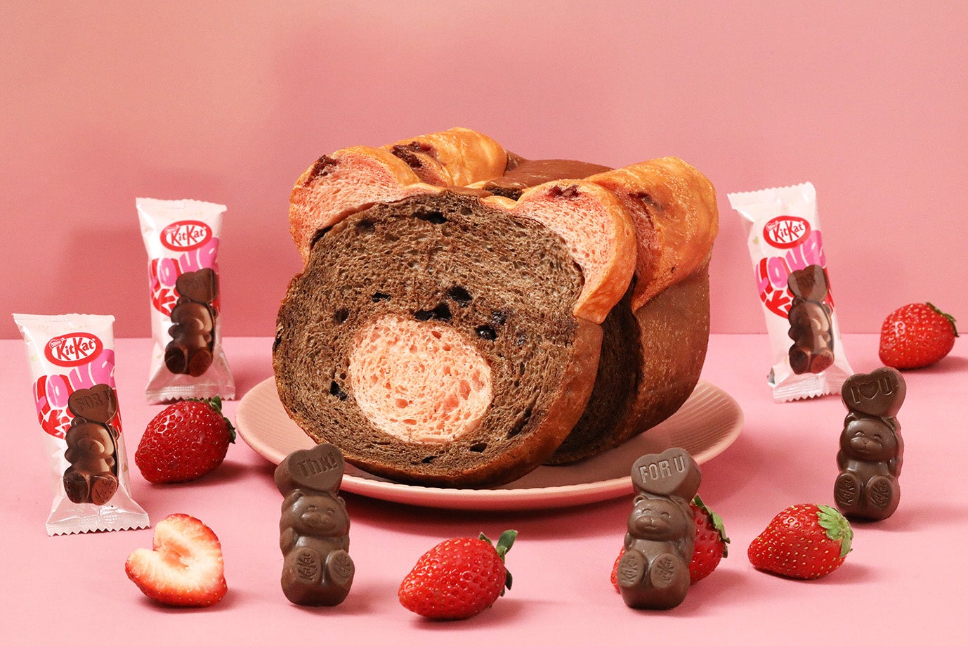 バレンタイン限定!“ねこ型食パン”が”くま型キットカット”に恋して大変身♡「ねこねこ食パン loves ハートフルベアー」1月24日(水)より、全国80店舗で販売開始