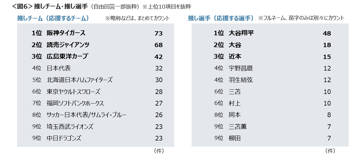 □ 応援するチーム(推しチーム)・応援する選手(推し選手) (自由回答一部抜粋)