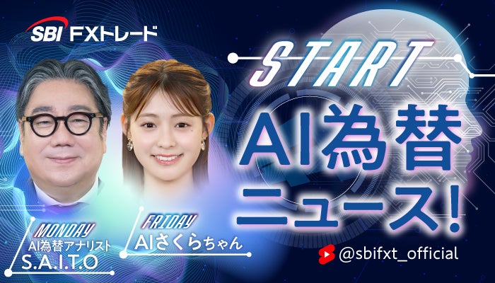 SBIホールディングス株式会社(本社:東京都港区、代表取締役会長兼社長:北尾 吉孝)の連結子会社で、個人投資家向けに外国為替取引サービスを提供するSBI FXトレード株式会社(本社:東京都港区、代表取締役社長:藤田 行生、以下「当社」)は、当社イメージキャラクターであるフリーアナウンサー田﨑さくらさんと当社エグゼクティブアドバイザー斎藤裕司の声と表情を再現した生成AIアナウンサーが最新マーケットを約60秒で解説する「AI為替ニュース!」を2025年5月23日(金)より配信いたします。情報量が多く文字中心になりがちな為替ニュースを、気軽に視聴できる縦型のショート動画の形にすることで、マーケット情報へのファーストタッチをより身近なものにいたします。