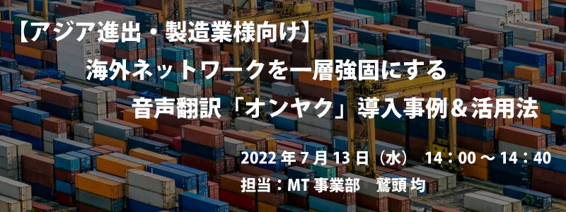 AI自動翻訳のロゼッタ ウェビナー『【アジア進出・製造業様向け】海外ネットワークを一層強固にする音声翻訳「オンヤク」導入事例&活用法』7月13日(水) 開催