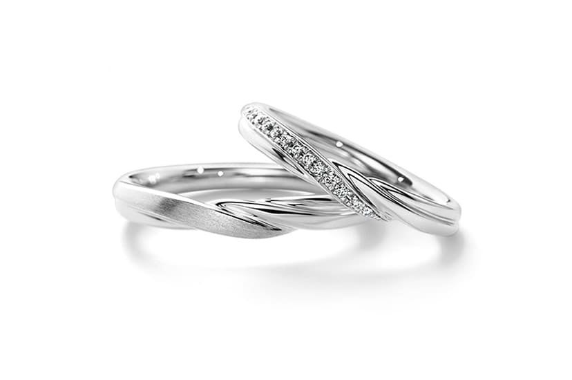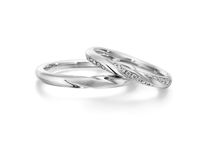 重ね着けした時に、エンゲージリングのセンターダイヤモンドから流れるように繋がるマリッジリングのメレダイヤモンドにより、ほどよく華やかで上品な指元へと仕上げます。