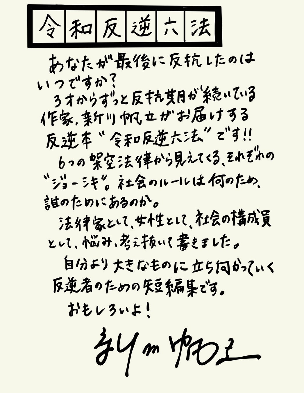 新川帆立『令和その他のレイワにおける健全な反逆に関する架空六法』1月26日発売決定!