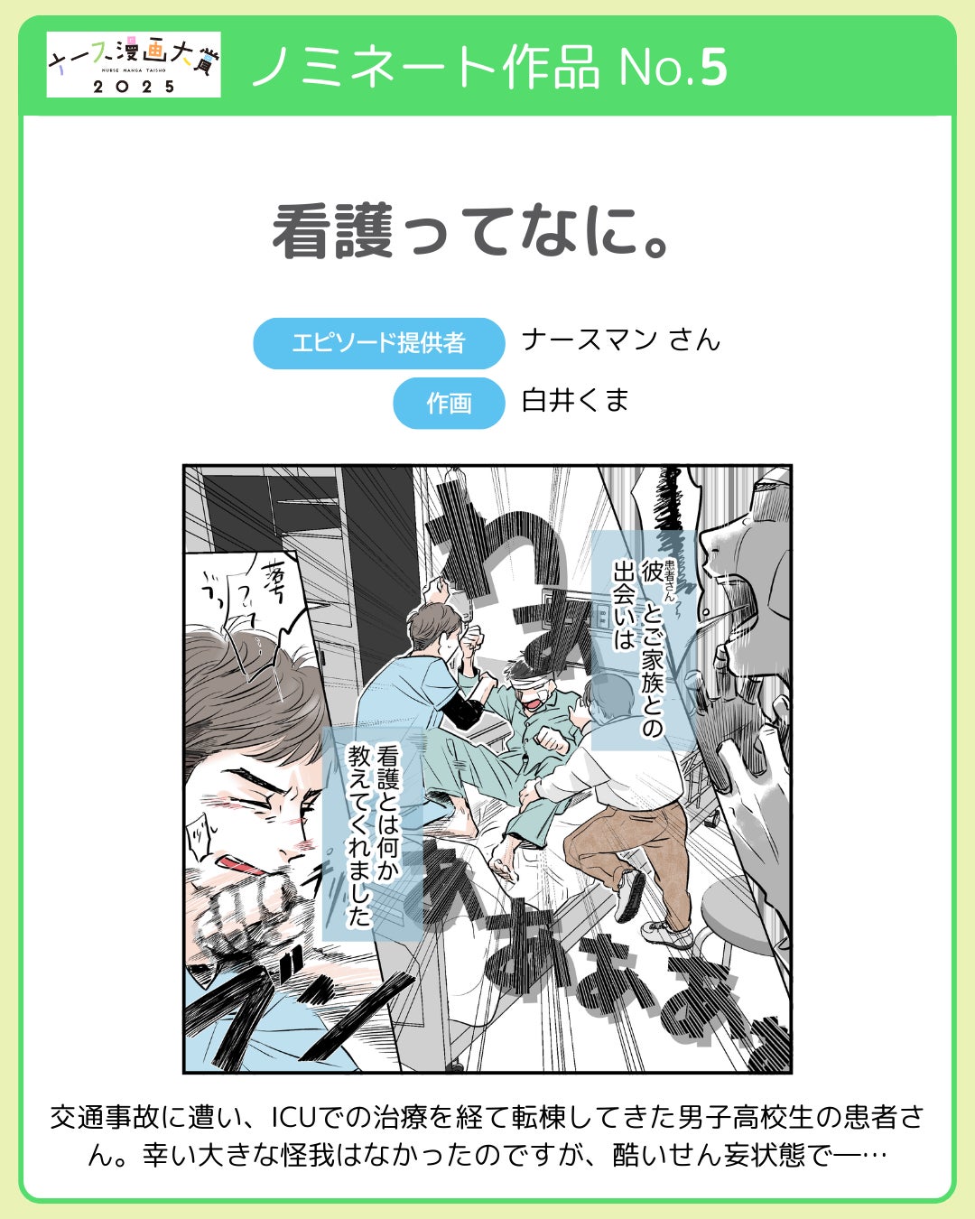 看護師・学生約140万人が利用する「ナース専科」、「ナース漫画大賞2025」の投票を開始。ノミネート作品の中から受賞作品を決定