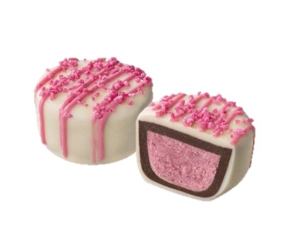 ストロベリー&ルビーチョコレートムースをダーク&ホワイトのチョコレートで二重に包みました。第4のチョコレートといわれる甘酸っぱいルビーチョコレートムースをお楽しみください。