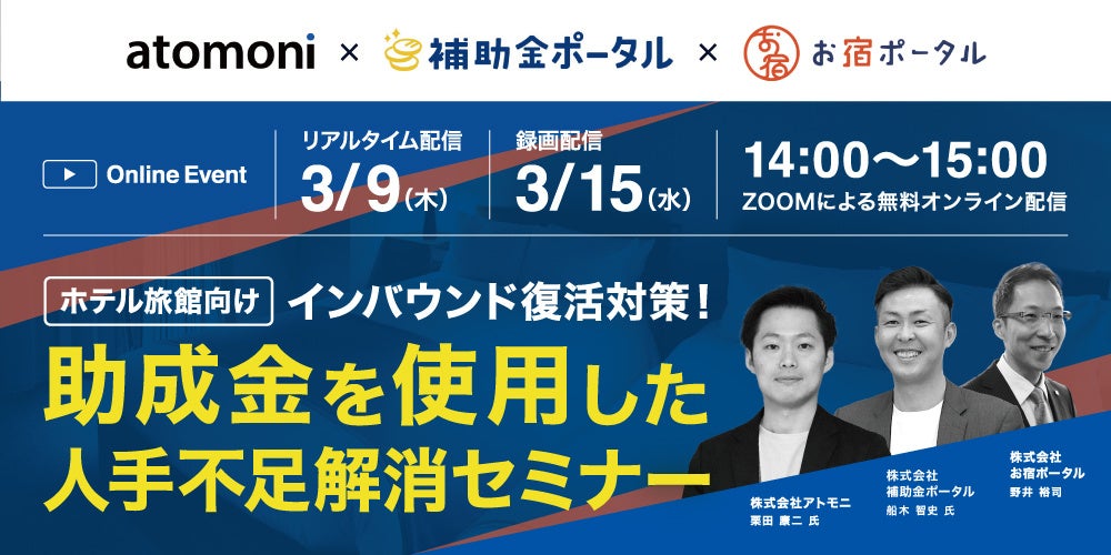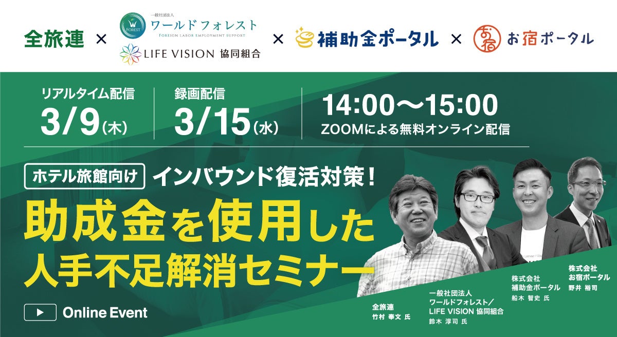 【3/9(木) ホテル・旅館向け】インバウンド復活対策!助成金を使った人手不足解消セミナー開催