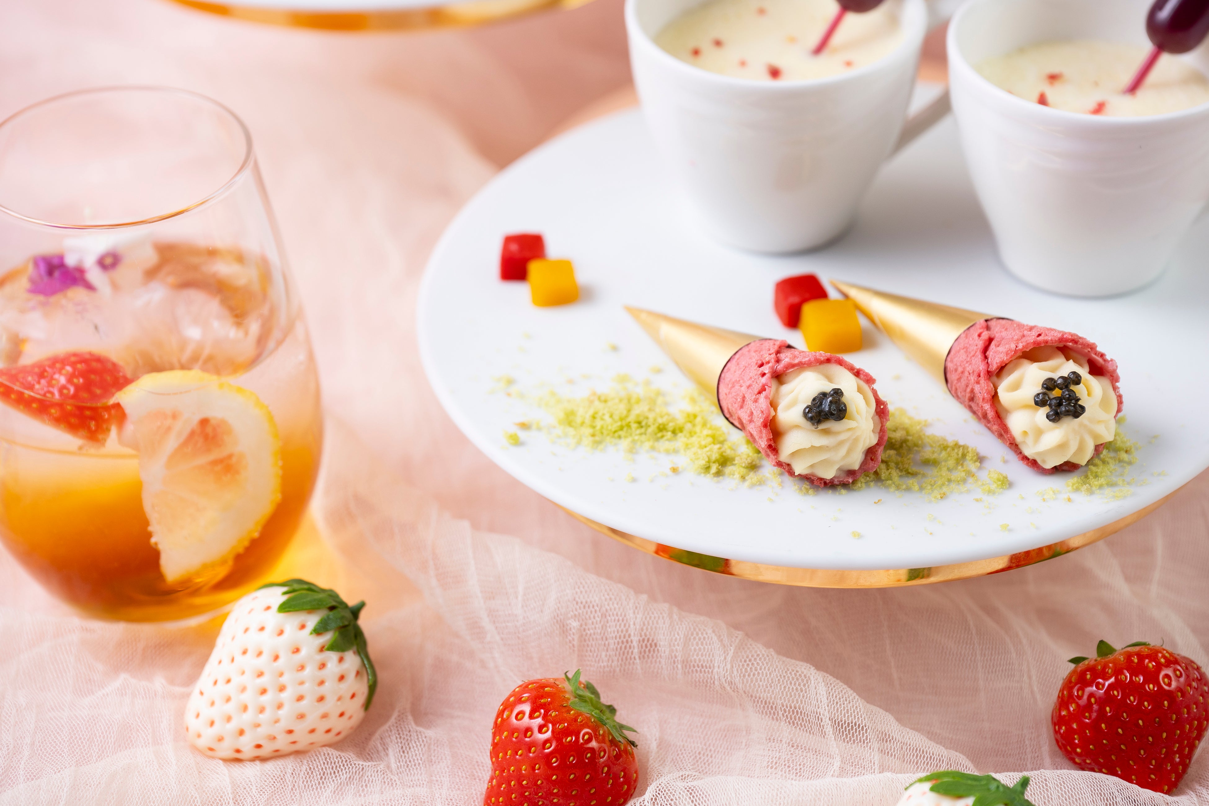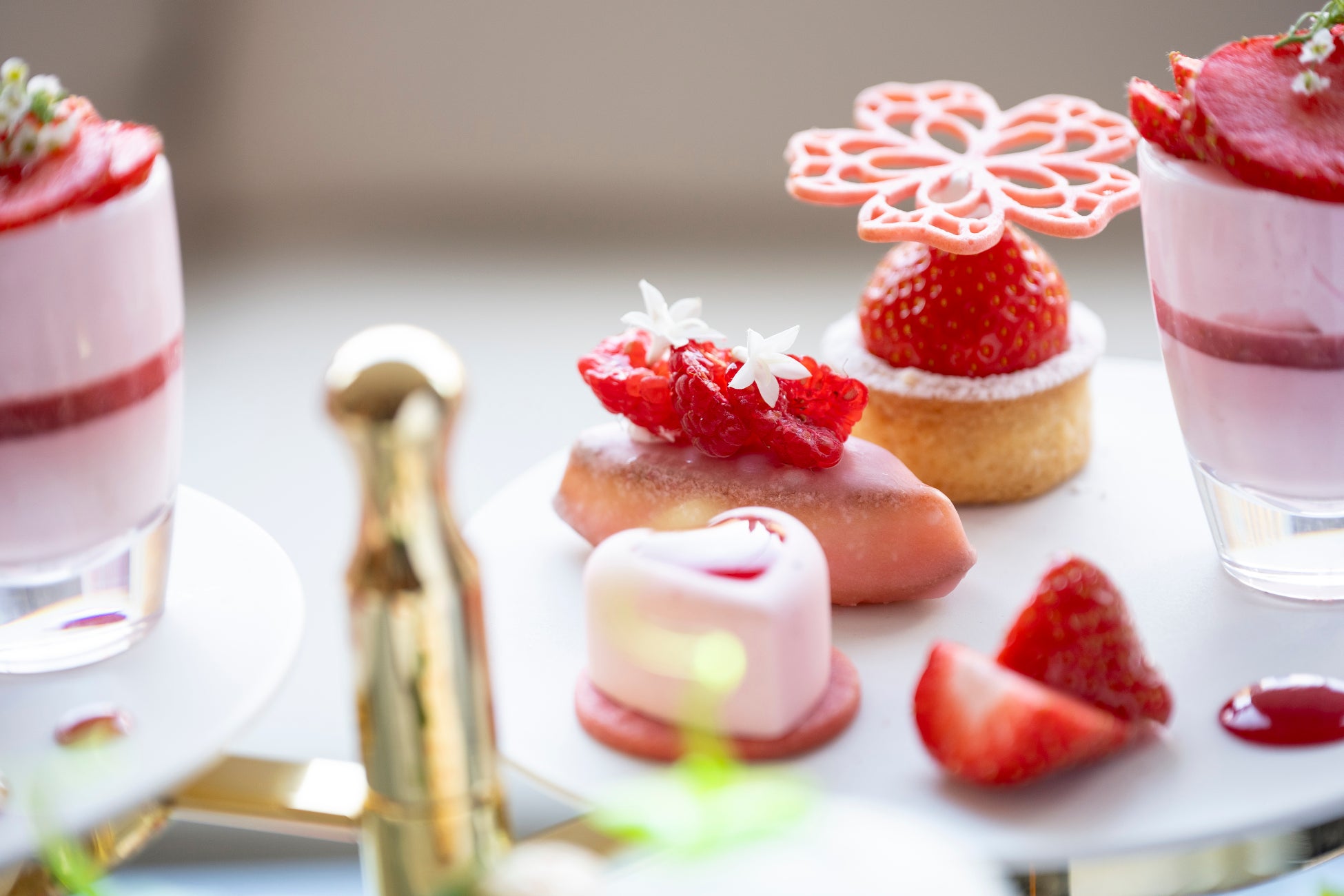 いちごが最も美味しくなる季節にあわせ、今年は花々といちご畑を思わせる華やかな世界観で、寒いこの時期にやわらかな春の気配を感じられる、フォトジェニックなスイーツとセイボリーをご用意いたしました。