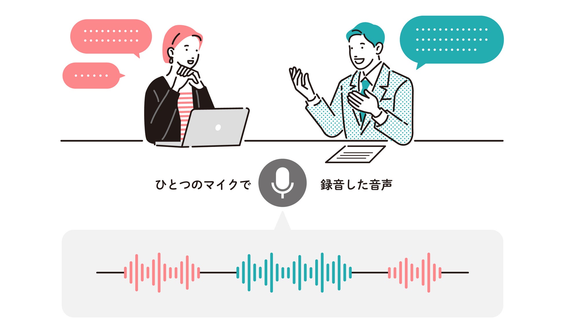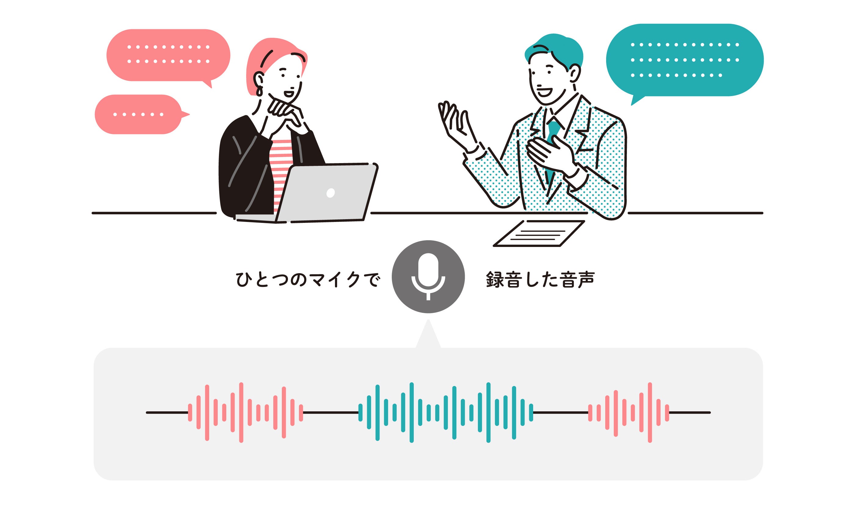 話者ダイアライゼーションは、複数の話者が含まれる音声に対して、誰がいつ話したのかを推定する技術です。アドバンスト・メディア独自開発の音響モデルを用いて、事前学習なしで音声から発話者を推定し、発言内容と発話者を自動的に紐づけます。会議や対面営業、面談、動画への字幕付与など、複数人が話をするシーンでご利用いただけます。