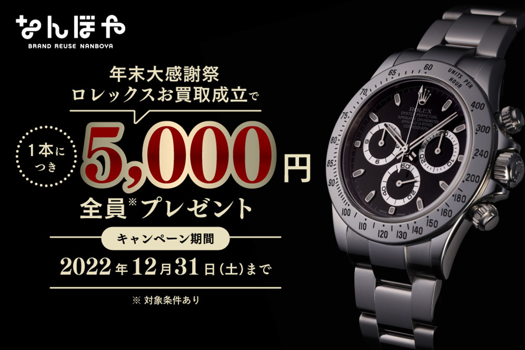ロレックス買取日本一の「なんぼや」が、ロレックス買取成立で全員5,000円プレゼントキャンペーンを開催!