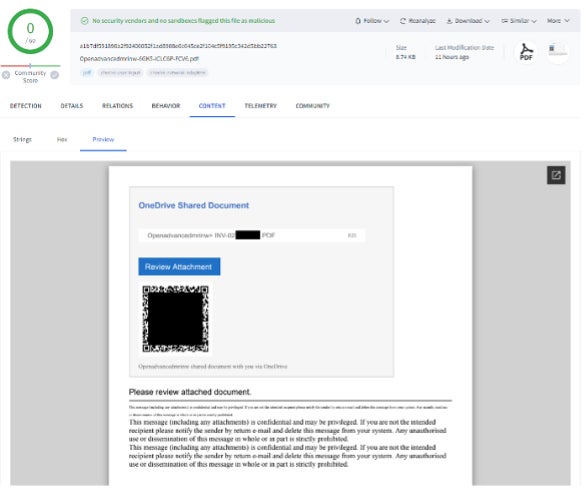 PDFに悪意あるウェブサイトやフィッシングサイトへと誘導するリンクを埋め込むという比較的アナログな手法が、自動化されたシステムによる検知を難しくしています。これにより攻撃者は、標的ユーザーがリンクをクリックして攻撃チェーンを開始するよう誘導することを狙っています。