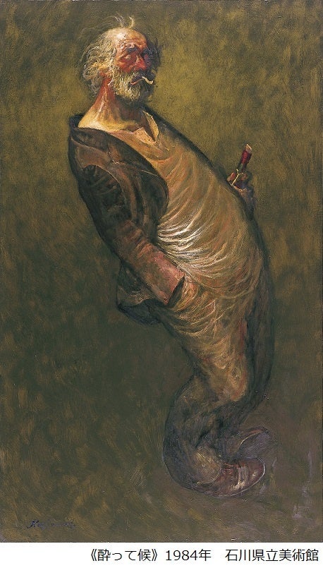 「人間とは何か」を描き続け、戦後の奇才と称された鴨居玲(1928-1985)。金沢美術工芸専門学校(現 金沢美術工芸大学)で宮本三郎に師事し、フランス、ブラジル、イタリアそしてスペインなど様々な国を巡るなかで「おばあさん」「酔っぱらい」などのモティーフに出会い、自身の画風を確立させていきました。自身にとって「写実」とは見えないものを描くことであるとし、人間の内面、己の理念を人物像などのモティーフを通して描き出した鴨居。本展では、自画像の画家と呼ばれた鴨居の初期から晩年までの「自画像」、スペイン滞在時に生まれた「酔っぱらい」、帰国後に新たな挑戦として取り組んだ「女性像」、信仰に対する問を表現した「教会」など、これら鴨居芸術において重要な要素であったモティーフに着目し、鴨居が描こうとした人間の心と心の関係、鴨居の芸術像を紹介します。また、『週刊読売』で連載された、陳舜臣のエッセイ『弥縫録 中国名言集』のために手掛けた挿絵原画の一部も展示します。